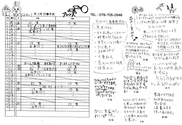 3月の食事提供メニューを載せました。